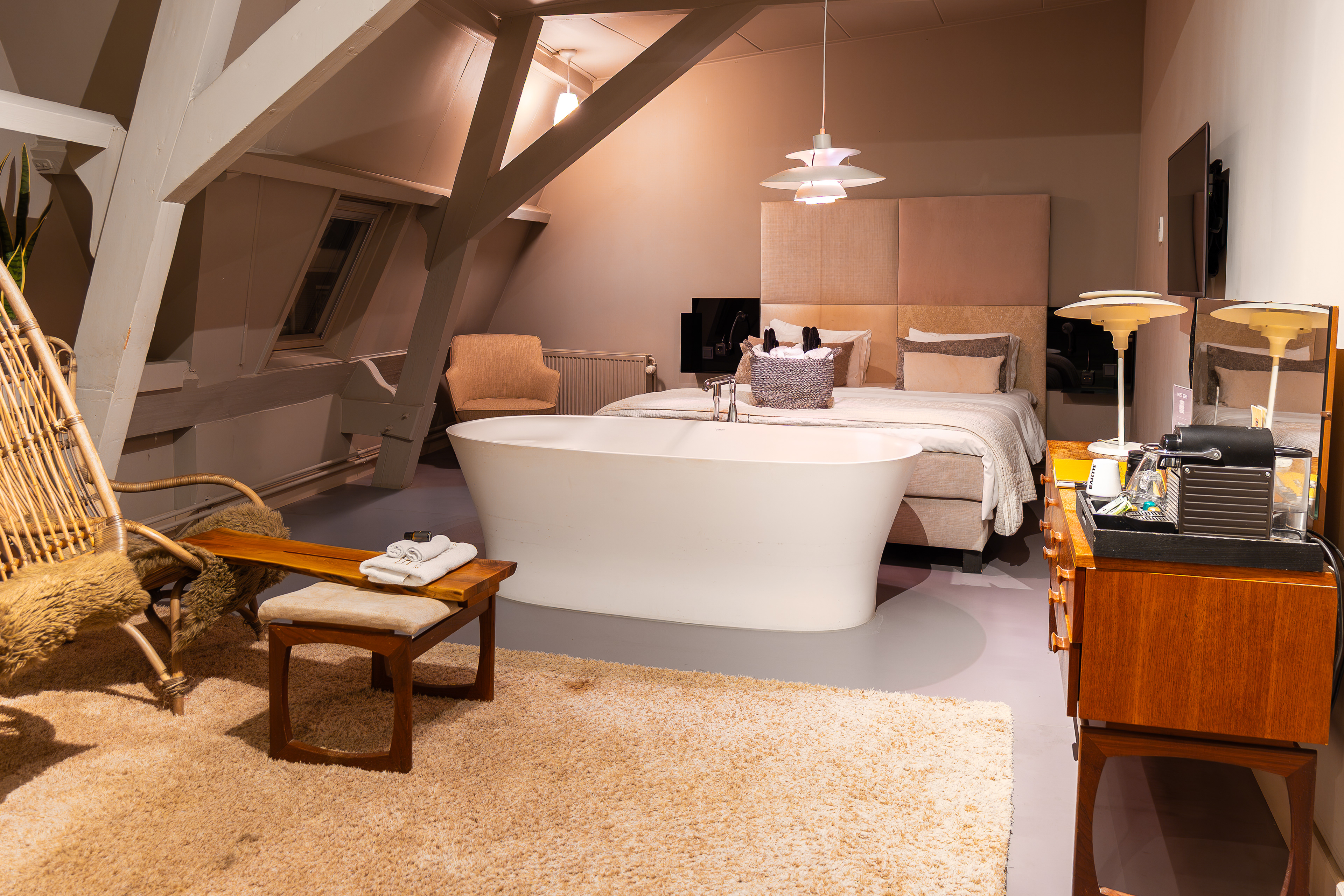 Hotel Staats in Haarlem combineert het karakter van een monumentaal schoolgebouw met eigentijds design en verfijnde gastvrijheid. In deze fotoreportage legden we de unieke sfeer van het boutique hotel vast: de stijlvolle kamers, de warme details in het interieur, de dynamiek van de gemeenschappelijke ruimtes en de rustige luxe die voelbaar is.